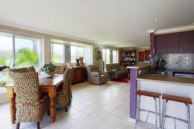 Living at the beach has never been easier! This recently renovated home has been designed to capture the easterly views over the Moonee Beach Nature Reserve and also to capture the prevailing north-easterly sea breezes. The home features 2 bedrooms on the lower level (one with a kitchenette and the other with an ensuite), double garage and workshop, plus a massive under-house storage and second workshop area. Upstairs boasts 2 bedrooms, the master is huge, with designer tiles in the ensuite, main bathroom, decent sized living and dining areas, plus the kitchen which has solid sandstone benches and heaps of cupboard and drawer space. The eastern end of the home has a massive deck (11 m x 2.8 m) which is ideal for entertaining, or breakfasting in the morning sun. This property is only 300m to Moonee Beach Shopping Centre, Tavern and local Childcare Centre, 500m to Moonee Beach Estuary and 900m to 2 beaches. You can even walk to Beachstone Café at Sapphire for a coffee or a meal.