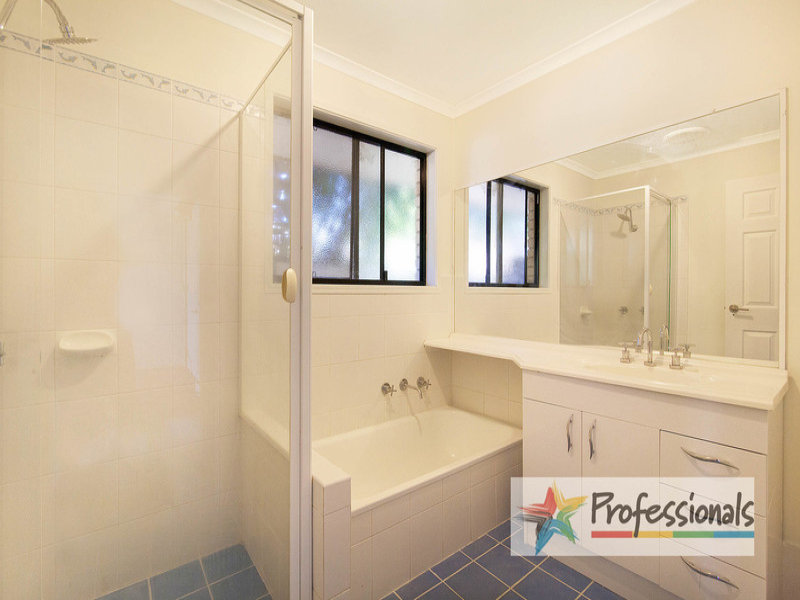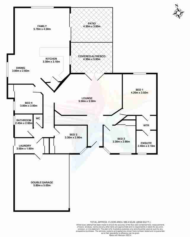 The master bedroom, with generous windows overlooking the backyard, has a walk through wardrobe and ensuite bathroom. The three additional bedrooms have built in wardrobes, carpet flooring, and are serviced by the main bathroom, with separate WC. The laundry room, with sliding doors to the side yard, has tiled flooring and a large linen closet.