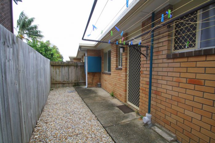 * Tidy rear courtyard with clothes line.