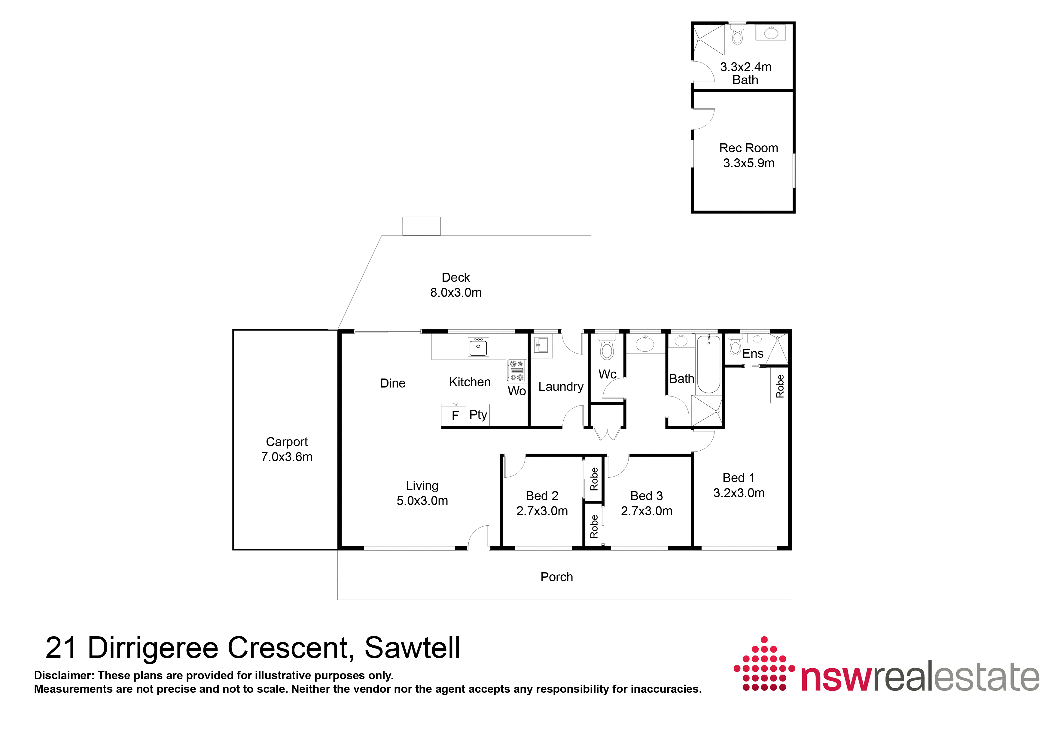 * New deck, separate recreation room and bathroom.