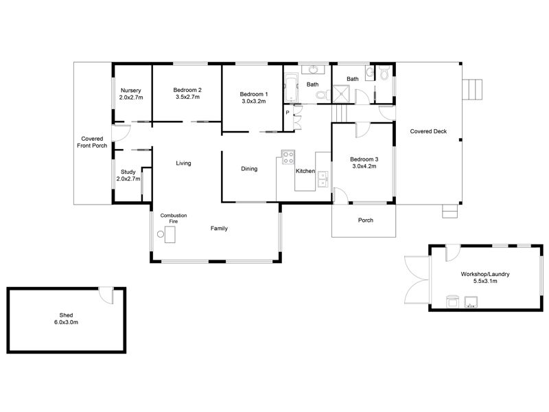 * Additional detached shed including laundry and workshop.