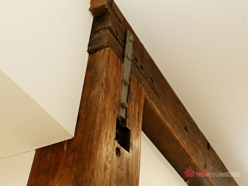 The main beam and central post in the living areas are heartwood Red Ironbark, from a railway bridge in Raleigh.