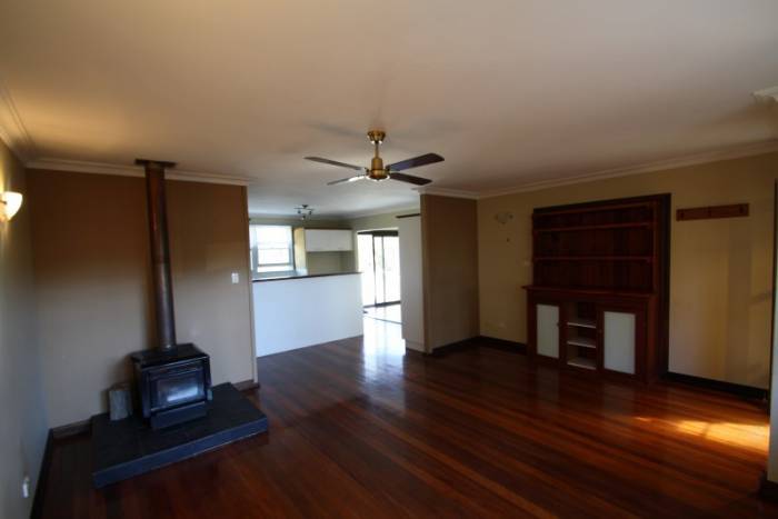 * Open plan lounge and dining area with timber floors.